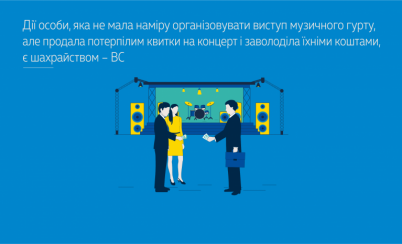 Дії особи, яка не мала наміру організовувати виступ музичного гурту, але продала потерпілим квитки на концерт і заволоділа їхніми коштами, є шахрайством – ВС