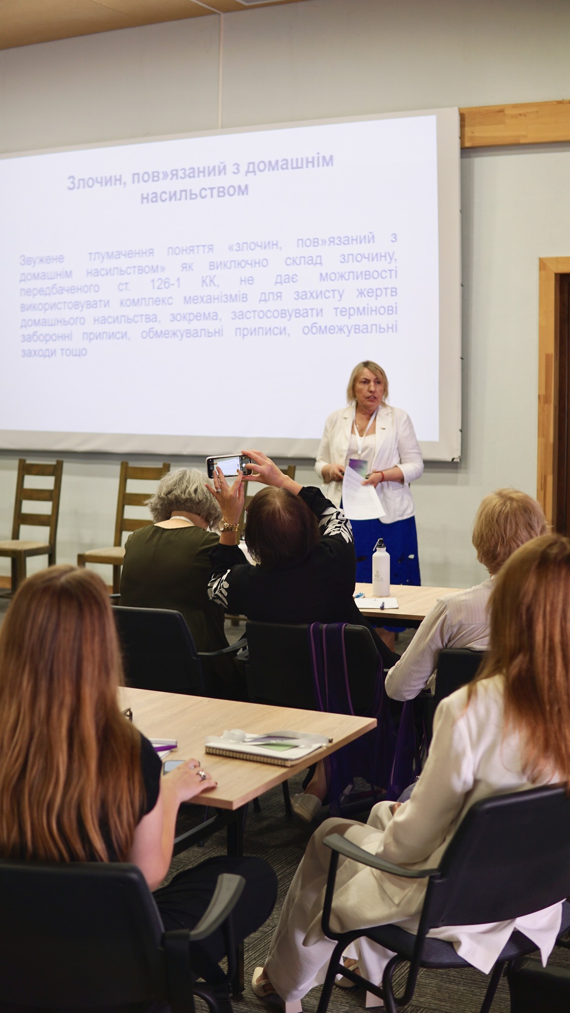 «У нашому законодавстві з’явився ще один термін – “злочин, пов’язаний із домашнім насильством”. На жаль, іноді правники розуміють цей термін звужено. Таке звужене тлумачення злочину, пов’язаного з домашнім насильством, як виключно складу злочину, передбаченого ст. 126-1 КК України, не дає можливості використовувати комплекс механізмів для захисту жертв домашнього насильства, зокрема застосовувати термінові заборонні приписи, обмежувальні приписи, обмежувальні заходи тощо. Тому в обвинувальних актах і слідчі, і прокурори мають обов’язково зазначати про те, що злочин був пов’язаний з домашнім насильством», – пояснила Надія Стефанів.