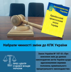Відсьогодні набрали чинності зміни до Кримінального процесуального кодексу України та інших законів