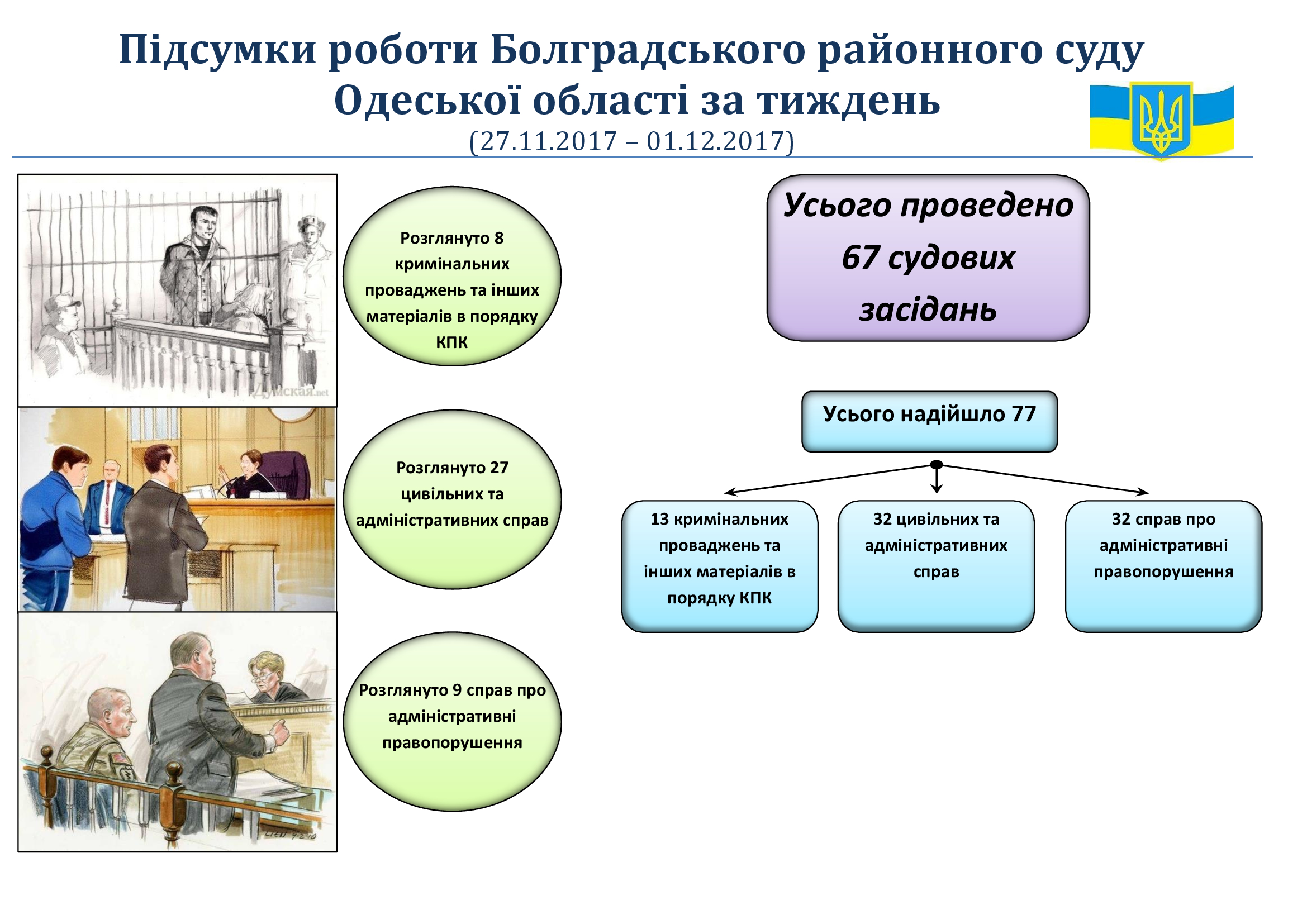Підсумовано роботу Болградського районного суду Одеської області за тиждень
