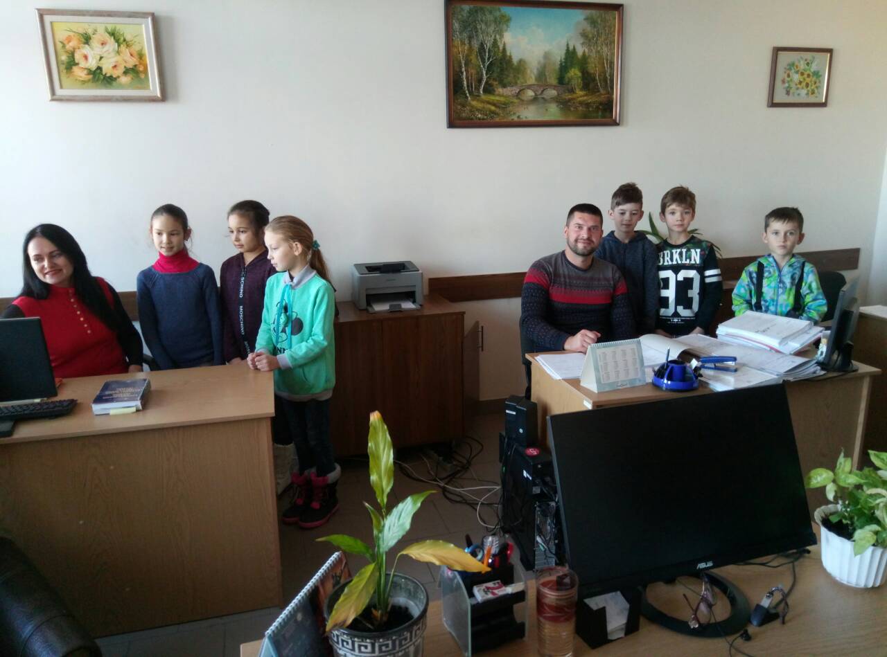 Керівник апарату Віталій Корчинський ознайомив відвідувачів з роботою працівників апарату суду. У ході екскурсії приміщенням суду школярі відвідали зали судових засідань (кримінальний та цивільний), канцелярію суду, архів суду, кабінети суддів та помічників.