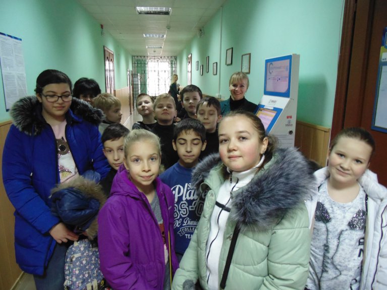 Зустріла учнів керівник апарату суду Алла Шевченко, яка провела коротеньку екскурсію приміщенням суду. Разом із керівником апарату суду діти відвідали архів суду та мали змогу побачити як зберігаються справи. Після цього Алла Шевченко показала як працює «великий комп’ютер» - інформаційний кіоск, що розміщений на 3 поверсі приміщення суду.
